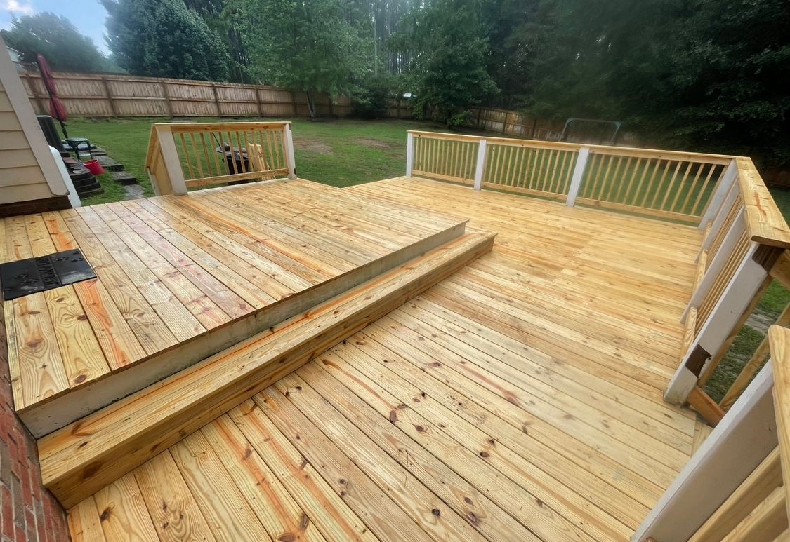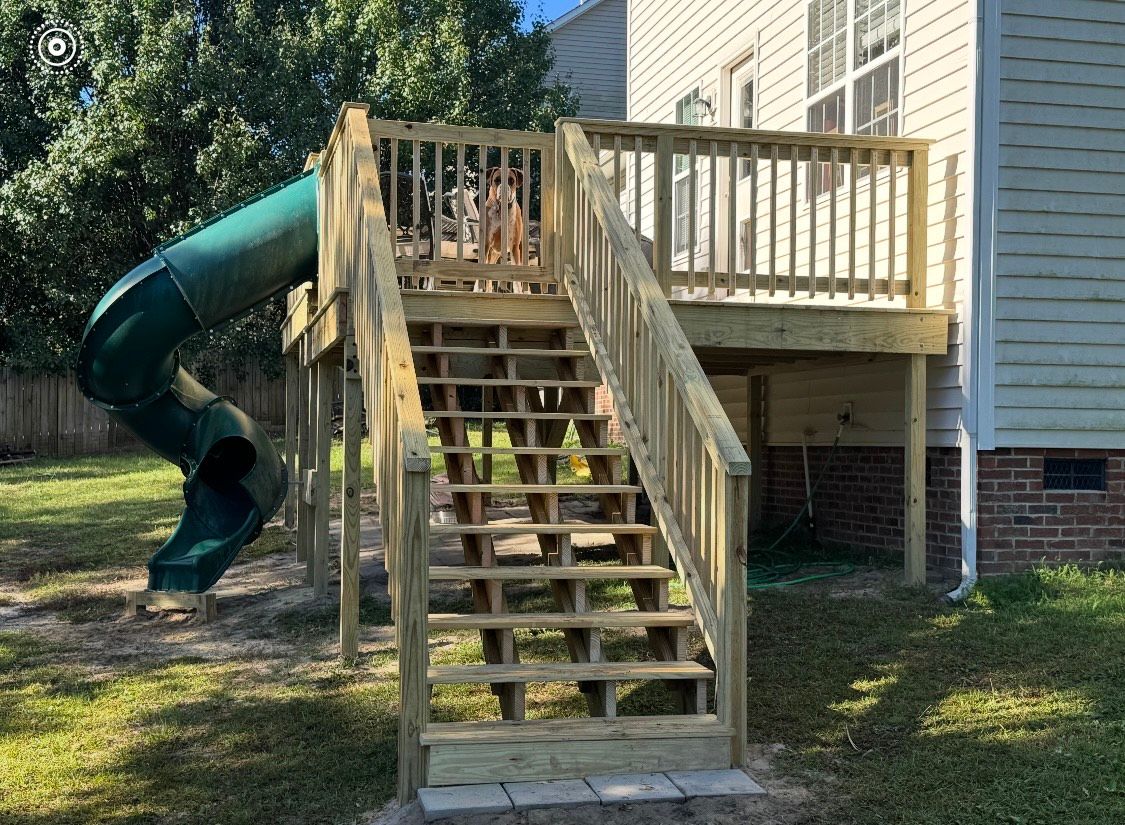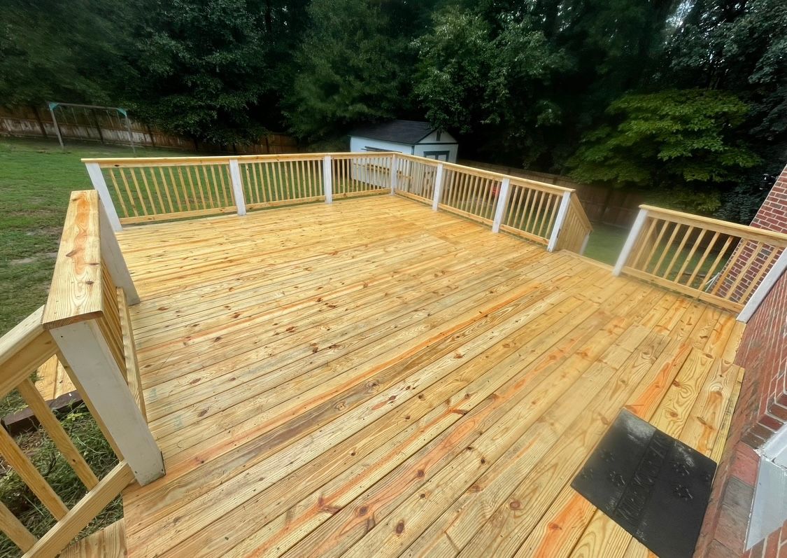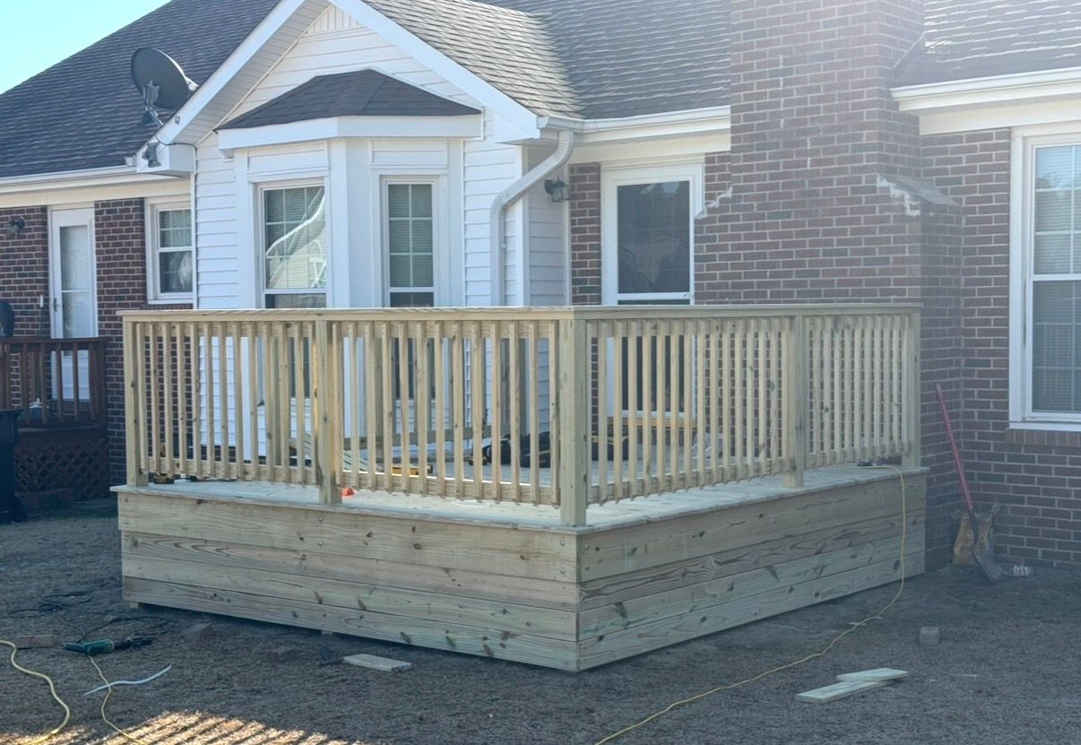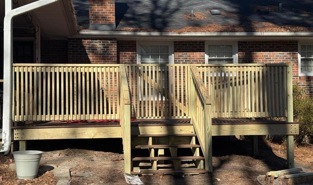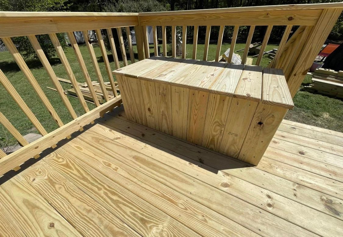 Deck with farm style enclosure on bottom, which is a durable alternative to lattice and keeps critters out
